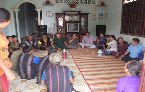 | Cán bộ huyện đang thăm hỏi và lắng nghe nguyện vọng của nhân dân |