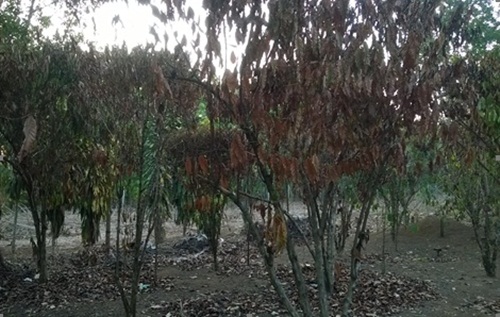 | Vườn cà phê khô héo do thiếu nước của 01 hộ dân tại xã Tân Thành |