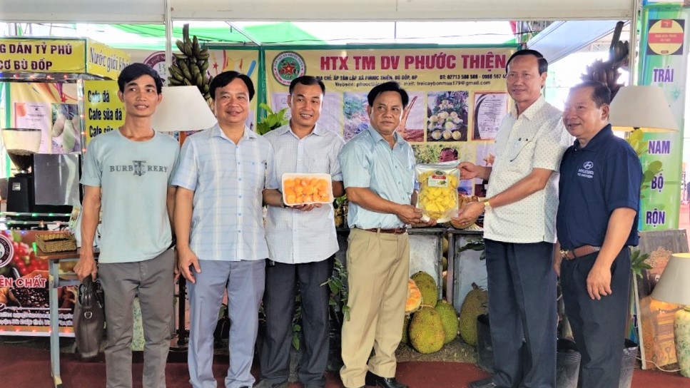 Huyện Bù Đốp tham gia với 04 gian hàng và 09 sản phẩm đạt tiêu chuẩn OCOP của tỉnh, qua đó giới thiệu các loại trái cây ngon, sản phẩm nông sản tiêu biểu của huyện đến với thị trường trong nước.