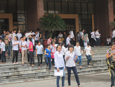 | Chưa hết giờ thi Văn nhưng rất nhiều thí sinh dự thi Cao đẳng Sư phạm tại điểm thi của Học viện Chính trị - Hành chính quốc gia Hồ Chí Minh đã nộp bài |