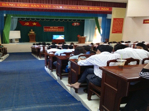 | Cán bộ đảng viên tham gia học trực tuyến |