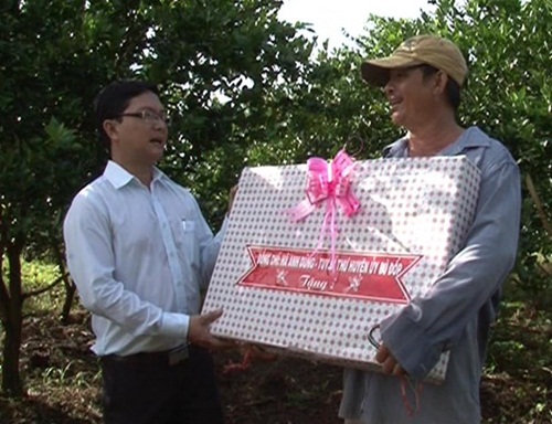 | Đ/c Hà Anh Dũng - TUV – Bí thư Huyện ủy, tặng quà kích lệ phát triển sản xuất cho hộ Ông Nguyễn Văn Hải ấp 5 xã Thanh hòa |