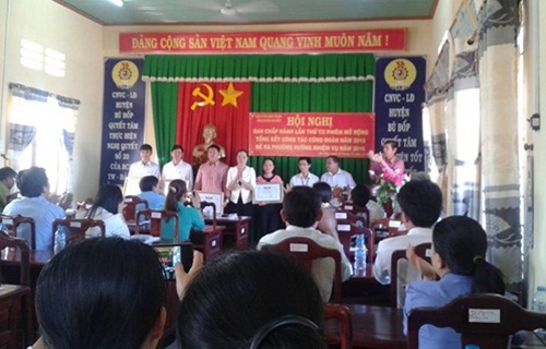 Nhân dịp này, Liên đoàn lao động tỉnh Bình Phước và Liên đoàn lao động huyện Bù Đốp cũng trao tặng Bằng khen và giấy khen cho các tập thể, cá nhân có nhiều thành tích xuất sắc trong sự nghiệp xây dựng tổ chức Công đoàn trong năm qua.