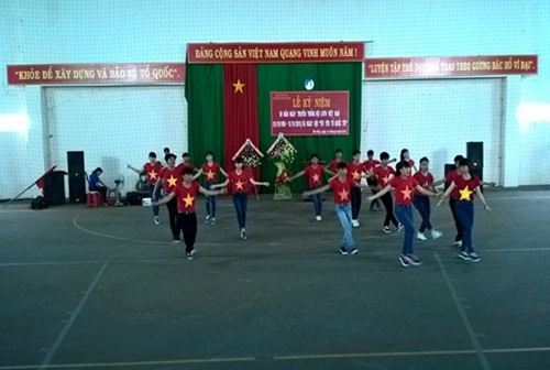 | Tiết mục múa dân vũ bài “việt Nam ơi” của đội xã Tân Tiến. |