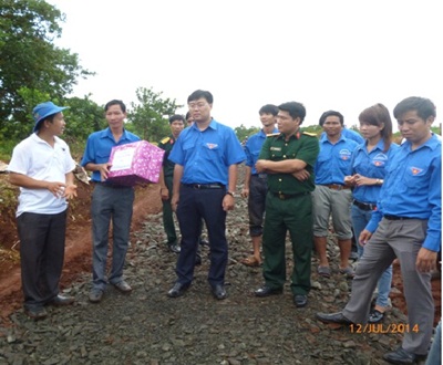 | Đ/c Lê Quốc Phong cùng “Đoàn” thăm và tặng quà Đội Thanh niên tình nguyện đang làm đường |