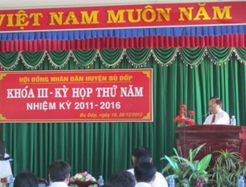 Về dự kỳ họp, ông Nguyễn Văn Năm – Phó Chủ tịch HĐND tỉnh đã đánh giá cao chất lượng hoạt động của đại biểu HĐND huyện và ông củng nhấn mạnh Nghị quyết của HĐND huyện đề ra phù hợp với tình hình phát triển của địa phương. Về cơ bản, trong năm 2012 huyện Bù Đốp đã thực hiện tốt các chỉ tiêu mà Nghị quyết HĐND huyện đã đề ra, các chỉ tiêu đều đạt và vượt kế hoạch. Ông mong rằng, HĐND huyện Bù Đốp cần phát huy hơn nữa những kết quả đã đạt được trong năm 2012 để làm tiền đề, cơ sở nhằm hoàn thành xuất sắc nhiệm vụ năm 2013.