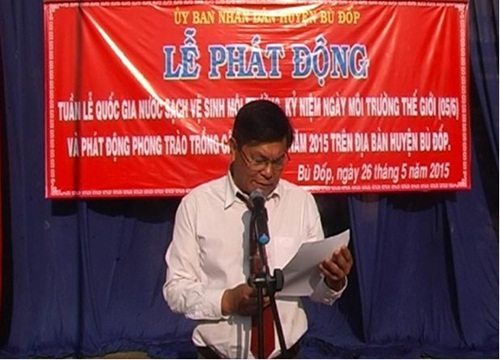 | Ông Đặng Thế Nhận PCT UBND huyện phát động kêu gọi hưởng ứng tuấn lễ quốc gia NSVSMT 2015 |