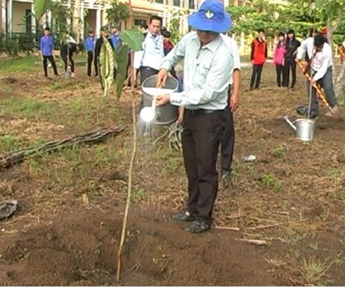 | Ông Hà Anh Dũng Bí Thư Huyện Ủy trồng cây sau buổi lễ phát động |