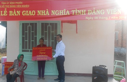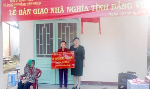Đảng viên Trần Thị Bê đang sinh hoạt tại chi bộ ở ấp Tân Trạch, đảng ủy xã Phước Thiện. Hoàn cảnh gia đình khó khăn, bà sống với con gái trên căn nhà đã cũ. Trước hoàn cảnh đó, Ban chỉ đạo đề án “Hỗ trợ vốn, nhà ở, đất sản xuất cho đảng viên nghèo giai đoạn 2014-2017” đã thống nhất hỗ trợ sữa chữa và xây mới nhà cho gia đình bà.