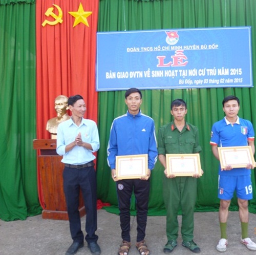 | Đ/c Bùi Hải Chung – Bí thư Huyện Đoàn trao giải nhất, nhì, ba cho các vận động viên |