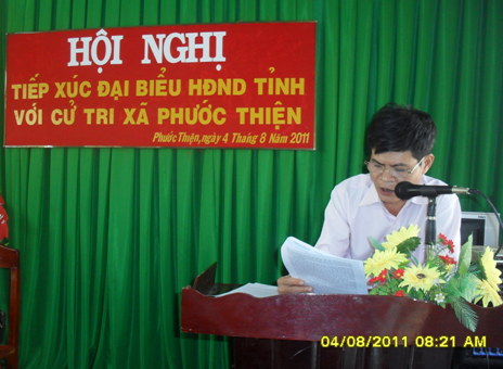 Tại buổi tiếp xúc đại biểu HĐND tỉnh đã thông báo nhanh những mặt làm được, chưa làm được về tình hình KT-VH-XH, QP-AN của tỉnh trong 6 tháng đầu năm 2011. Thông qua các NQ HĐND tỉnh đã thống nhất cho chiến lược phát triển tỉnh nhà trong thời gian tới tại hai kì họp thứ nhất và thứ hai HĐND Tỉnh khóa VIII nhiệm kì 2011-2016.