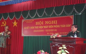 Tại Hội nghị, các đại biểu đã được nghe báo cáo sơ kết 05 năm thực hiện ngày biên phòng toàn dân (03/3/2009-03/3/2013). Qua 05 năm thực hiện, huyện đã phát huy có hiệu quả trong lãnh đạo, chỉ đạo công tác quản lý, bảo vệ biên giới quốc gia, giữ vững an ninh chính trị, trật tự an toàn xã hội ở khu vực biên giới, cụ thể: tuyên truyền tập trung được 365 buổi với 19.960 lượt người nghe, tuyên truyền cá biệt được 525 lượt người nghe, tuyên truyền qua loa phát thanh được 1.770 giờ… tổ chức tuần tra bảo vệ biên giới được 519 lần với 3453 lượt người tham gia, phát hiện 210 trường hợp cư trú trái phép, giáo dục trên 100 đối tượng liên quan đến an ninh trật tự, vi phạm quy chế biên giới. Duy trì thường xuyên các hoạt động đối ngoại với chính quyền và lực lượng vũ trang các huyện giáp biên Cămpuchia trên tinh thần hòa bình, hữu nghị, hợp tác và phát triển; hàng tháng, quý đều tổ chức giao ban theo Nghị định 77/CP, từ đó tình hình an ninh chính trị – trật tự an toàn xã hội được đảm bảo ổn định, an ninh quốc phòng luôn được củng cố, các thôn ấp các xã biên giới có tổ an ninh nhân dân, tổ hòa giải, tổ tự quản, hầu hết các xã đều thực hiện có nề nếp phong trào quần chúng tham gia tự quản đường biên cột mốc. Công tác xây dựng cơ sở vật chất, các công trình phòng thủ bảo vệ biên giới được quan tâm đầu tư để phối hợp với lực lượng BĐBP thực hiện tốt nhiệm vụ giữ vững an ninh biên giới. Các đơn vị tổ chức đoàn thể xây dựng chương trình thiết thực về ngày Biên phòng toàn dân, góp phần cùng Bộ đội biên phòng bảo vệ chủ quyền an ninh biên giới, giữ gìn an ninh trật tự. Từ những kết quả trên, đã tạo nên thế trận quốc phòng toàn dân gắn với thế trận an ninh nhân dân vững chắc, góp phần cùng địa phương thực hiện tốt 2 nhiệm vụ bảo vệ tổ quốc và phát triển kinh tế- xã hội.