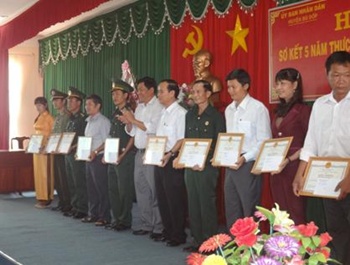 Tại Hội nghị, huyện Bù Đốp cũng đã trao tặng giấy khen cho 06 tập thể và 12 cá nhân và đề nghị UBND tỉnh tặng Bằng khen cho 05 tập thể và 05 cá nhân. có thành tích trong thực hiện ngày biên phòng toàn dân.