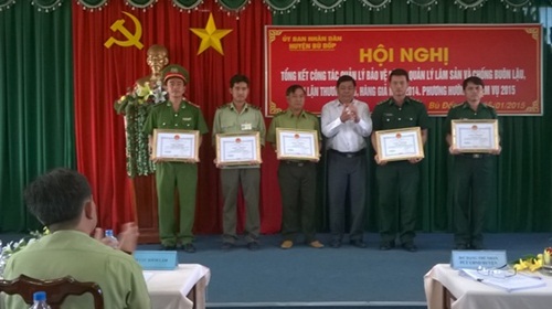 | UBND huyện tặng giấy khen cho tập thể, cá nhân có thành tích trong công tác quản lý bảo vệ rừng, quản lý lâm sản năm 2014 |