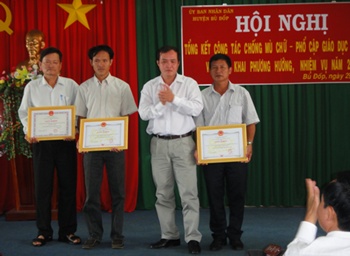 Phát biểu tại Hội nghị, ông Nguyễn Châu Vĩnh - Trưởng phòng giáo dục Dân tộc – Sở Giáo dục và Đào tạo tỉnh đã đánh giá cao kết quả mà huyện đã đạt được; đồng thời ông cũng hy vọng rằng, huyện Bù Đốp tiếp tục phát huy những kết quả đạt được, đề ra các giải pháp thiết thực, phù hợp để trong năm 2012 công tác chống mù chữ - phổ cập giáo dục đạt được nhiều kết quả tốt hơn.
