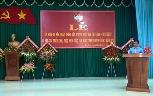 | TUV- bí thư huyện ủy Bù Đốp Hà Anh Dũng Phát biểu chúc mừng tại lễ kỷ niệm. |