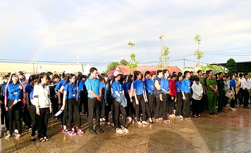 | Dù trời mưa những đông đảo đoàn viên thanh niên vẫn nhiệt tình hưởng ứng lễ mittinh |