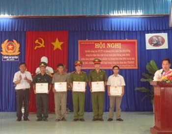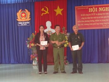 Tại Hội nghị, được sự ủy quyền của Bộ Công an, đ/c Phạm Xuân Chiến – PGĐ Công an tỉnh đã trao Kỷ niệm chương “BVANTQ” của Bộ Công an cho 02 cá nhân; UBND huyện đã trao bằng khen của UBND tỉnh cho 01 tập thể và tặng giấy khen của UBND huyện cho 06 tâp thể và 10 cá nhân đã có thành tích xuất sắc trong công tác PCTP và phong trào TDBVANTQ năm 2013.