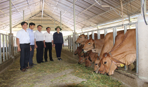 Đoàn đã đến thăm mô hình hợp tác xã Chăn nuôi gia súc giống Bù Đốp Tại ấp Mười mẫu xã Phước Thiện. Đây là mô hình do Sở Khoa Học Công Nghệ tỉnh Bình Phước làm chủ đầu tư với 20 xã viên tham gia với nguồn vốn ban đầu trên 2 tỷ đồng. Hiện tại hợp tác xã chăn nuôi gia súc giống đang chăm sóc 60 con bò gống sinh sản được nhập từ Trung tâm gia súc lớn của huyện Bàu Bàng Tỉnh Bình Dương. Đây là giống bò Brahman có sức đề kháng tốt tỷ lệ sinh sản cao, chất lượng thịt cũng như gia trị dinh dưỡng tốt hơn so với các giống bò khác. Sau khi được thành lập Hợp tác xã sẽ là trung tâm nghiên cứu, sản xuất giống và cung ứng ra thị trường phục vụ phát triển chăn nuôi trên địa bàn. Và hình thành chuỗi cung ứng các sản phẩm về chăn nuôi gia súc của huyện.