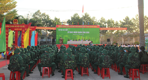 Hòa chung không khí của cả nước thanh niên Bù Đốp hăng hái lên đường làm nhiệm vụ bảo vệ tổ quốc, bảo vệ vững chắc chủ quyền biên giới quốc gia. Đúng 7h sáng ngày 12-02-2020, tại Trung tâm Văn hóa – thể thao huyện Bù Đốp, UBND huyện Bù Đốp tổ chức Lễ giao nhận quân năm 2020.
