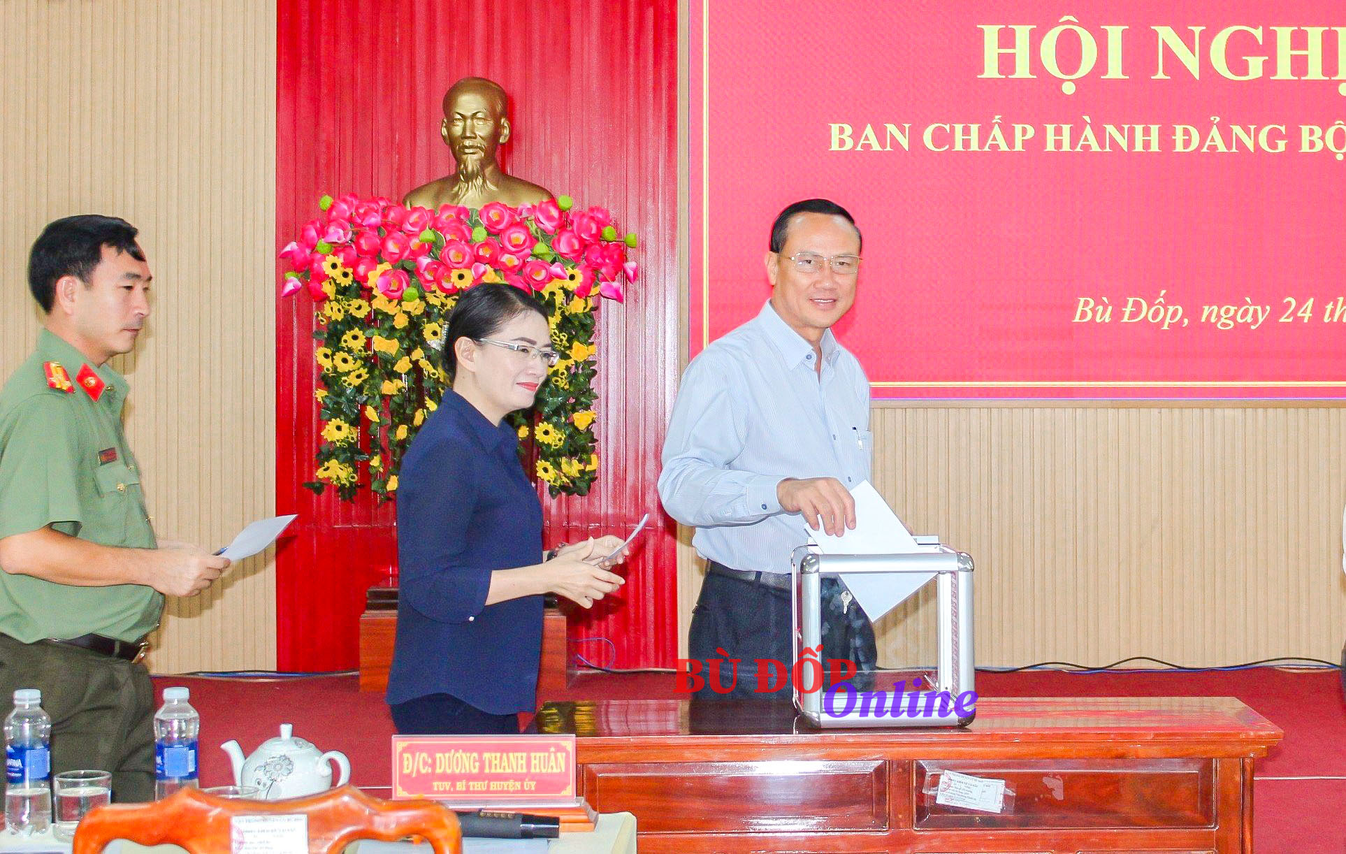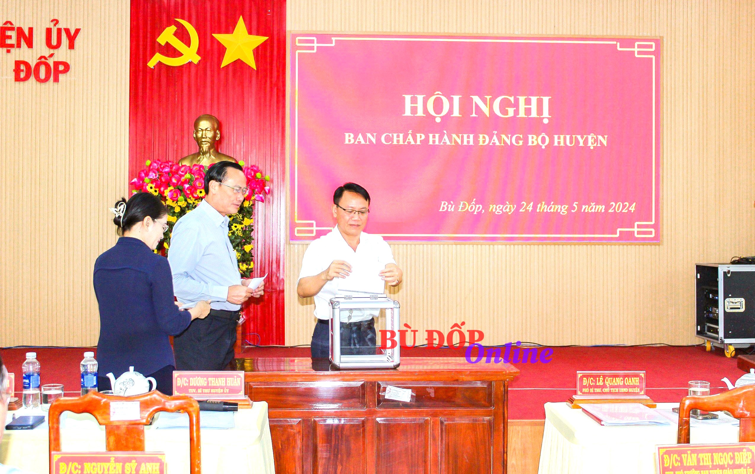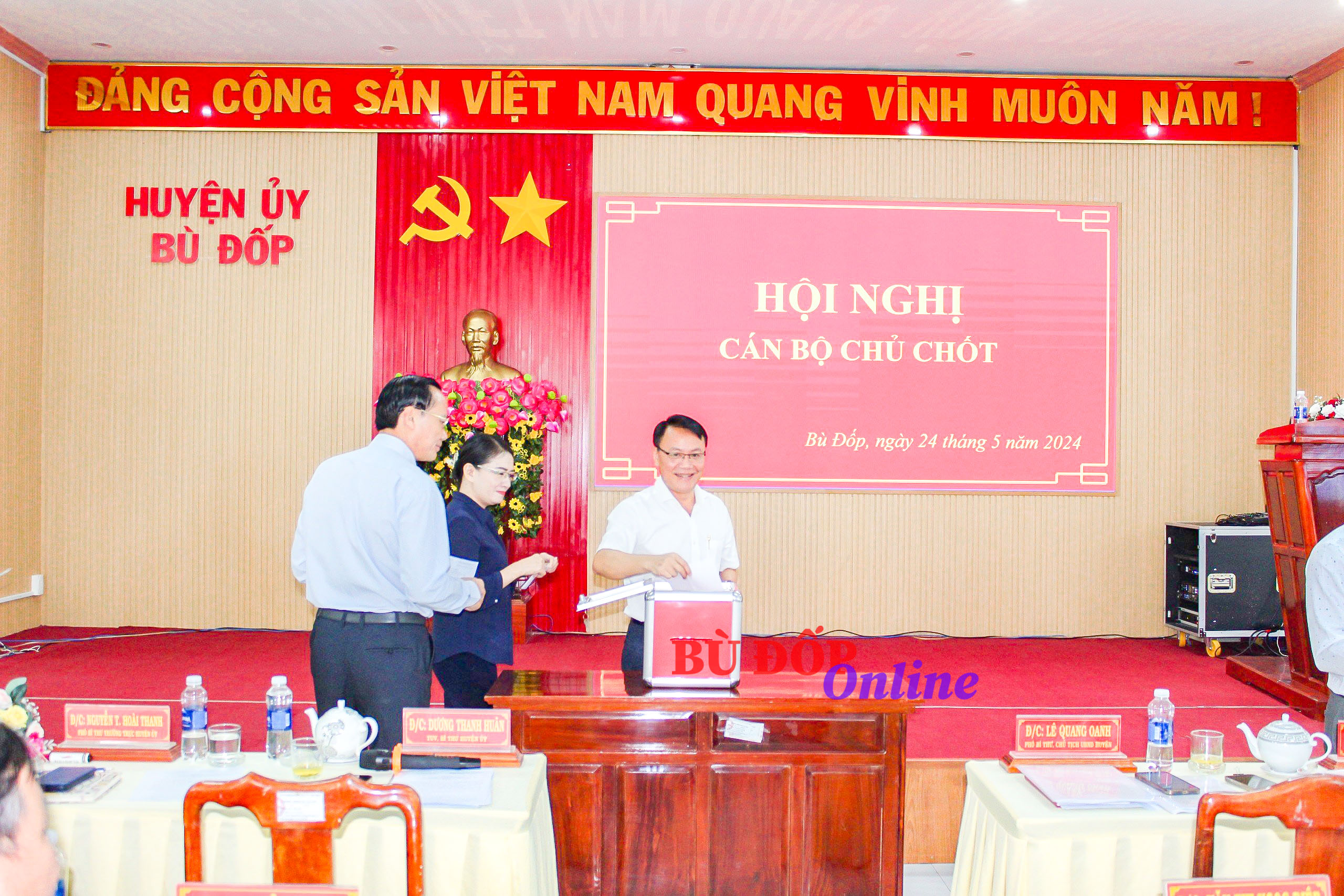 Trên cơ sở tờ trình của Ban Tổ chức Huyện ủy, Ban Thường vụ Huyện ủy, Ban Chấp hành Đảng bộ huyện và các cán bộ chủ chốt của huyện đã tiến hành bỏ phiếu giới thiệu nhân sự hiệp thương cử chức danh Chủ tịch Ủy ban MTTQ Việt Nam huyện Bù Đốp nhiệm kỳ 2024-2029.