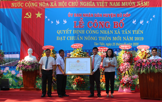 Với quyết tâm của hệ thống chính trị từ huyện đến xã, sự đồng thuận của nhân dân trong thực hiện chủ trương, chính sách về xây dựng nông thôn mới, xã Tân Tiến đã đạt 19 tiêu chí, trở thành xã thứ 3 của huyện Bù Đốp đạt chuẩn nông thôn mới năm 2019.