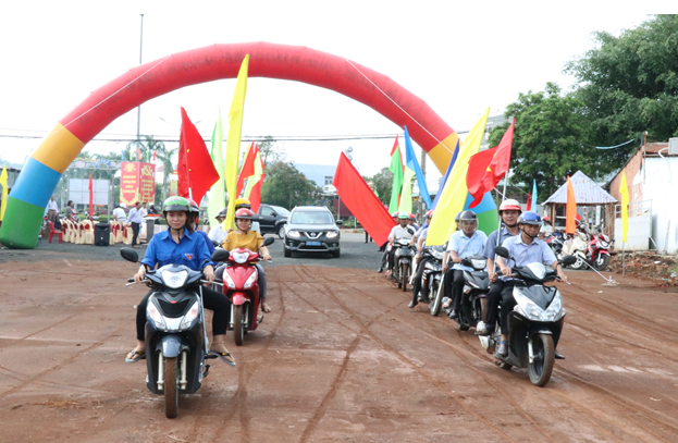 Đại biểu và nhân dân thị trấn Thanh Bình diễu hành tại buỗi Lễ thông xe