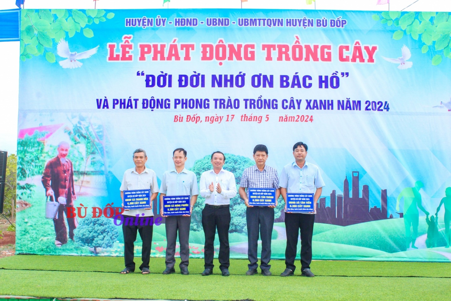 Hưởng ứng lời dạy của Bác Hồ và Kế hoạch của UBND tỉnh về thực hiện Chương trình trồng cây xanh giai đoạn 2021-2025, Đảng bộ và chính quyền huyện Bù Đốp đã tổ chức nhiều hoạt động trồng cây xanh, trồng rừng, đạt 100% kế hoạch. Đến nay phần lớn các tuyến đường trung tâm, trụ sở các cơ quan, đơn vị, các Khu dân cư và một số khu rừng đã trồng được nhiều loại cây xanh, chất lượng cây trồng luôn được đảm bảo. Qua đó đã tác động tích cực đến việc bảo vệ môi trường sinh thái, phục vụ đời sống dân sinh của đất nước nói chung và huyện Bù Đốp nói riêng. Với ý nghĩa lo lớn của việc trồng cây xanh và đặc biệt việc trồng cây hôm nay cũng là một nét tri ân, tưởng nhớ Bác Hồ- người anh hùng vĩ đại của nước ta. Với ý nghĩa đó, UBND huyện xin long trọng tuyên bố khai mạc Lễ trồng cây “Đời đời Nhớ ơn Bác Hồ” và phong trào trồng cây xanh năm 2024. UBND huyện kêu gọi tổ chức, cá nhân, doanh nghiệp,... tham gia tích cực vào phong trồng cây xanh do huyện phát động, từ đó tăng tỷ lệ cây xanh và tỷ lệ che phủ rừng chung trên toàn huyện.