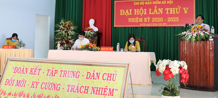 Tại đại hội các đại biểu đã phát huy tinh thần dân chủ, tập trung tham gia đóng góp ý kiến văn kiện đại hội và biểu quyết thông qua các chỉ tiêu nghị quyết, chương trình hành động nhiệm kỳ 2020-2025. Đại hội tiến hành bầu cấp ủy gồm 03 đồng chí, đồng chí Cao Hoài Thu được tín nhiệm bầu giữ chức danh Bí thư chi bộ BHXH nhiệm kỳ 2020 – 2025. Đồng thời đại hội bầu đoàn đại biểu chính thức và dự khuyết đi dự đại hội cấp trên là 04 đồng chí.