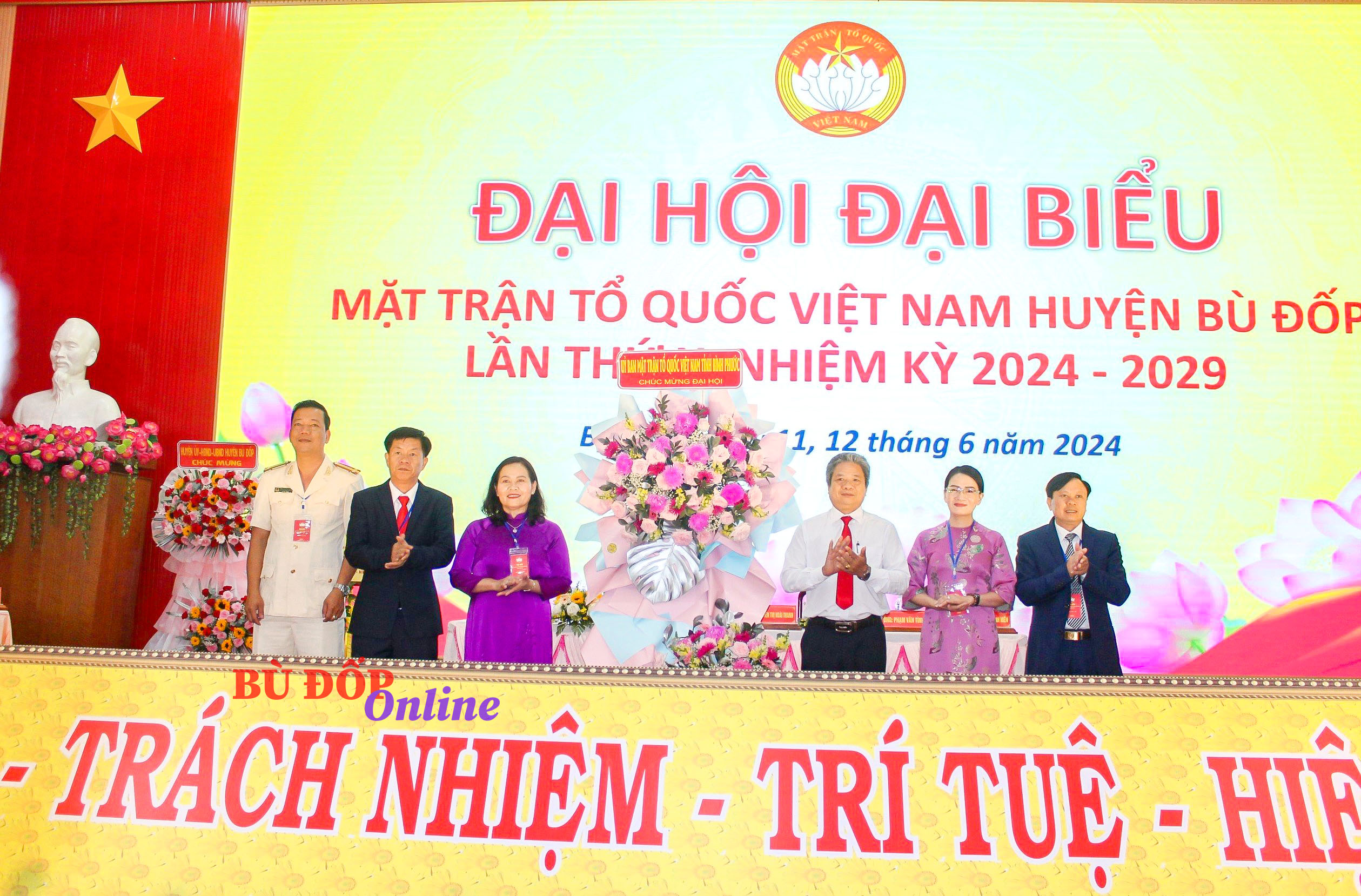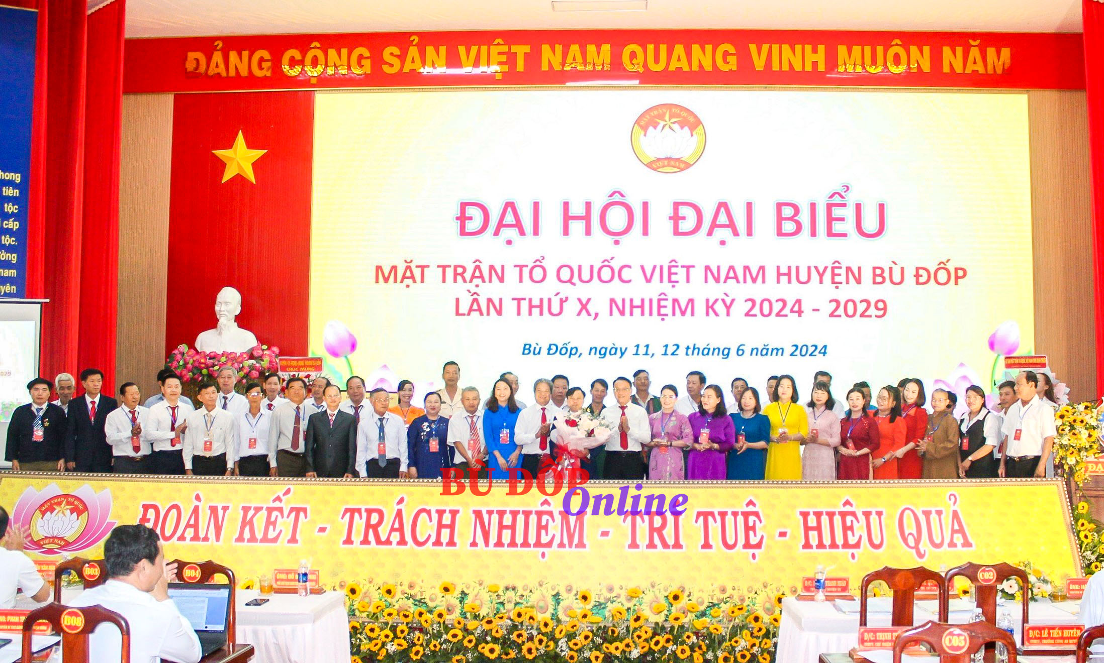 Với chủ đề “Đoàn kết - Trách nhiệm - Trí tuệ - Hiệu quả”, Đại hội MTTQ Việt Nam huyện Bù Đốp đề ra mục tiêu, nhiệm vụ, chương trình hành động cụ thể nhiệm kỳ 2024-2029. Đại hội hiệp thương cử 49 đại biểu tham gia Uỷ ban Mặt trận Tổ quốc Việt Nam huyện nhiệm kỳ 2024-2029; ông Phạm Văn Tình, UVBTV, Bí thư Đảng ủy thị trấn Thanh Bình được tín nhiệm hiệp thương giữ chức danh Chủ tịch UBMTTQ Việt Nam huyện nhiệm kỳ 2024-2025. Đại hội cũng đã hiệp thương 14 đại biểu đi dự Đại hội MTTQ Việt Nam tỉnh Bình Phước lần thứ X, nhiệm kỳ 2024-2029.