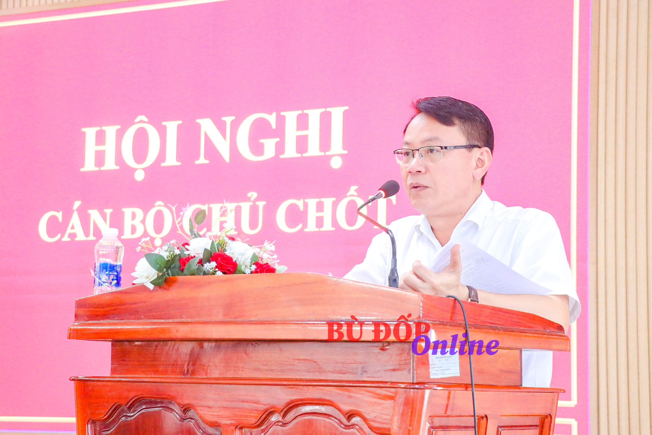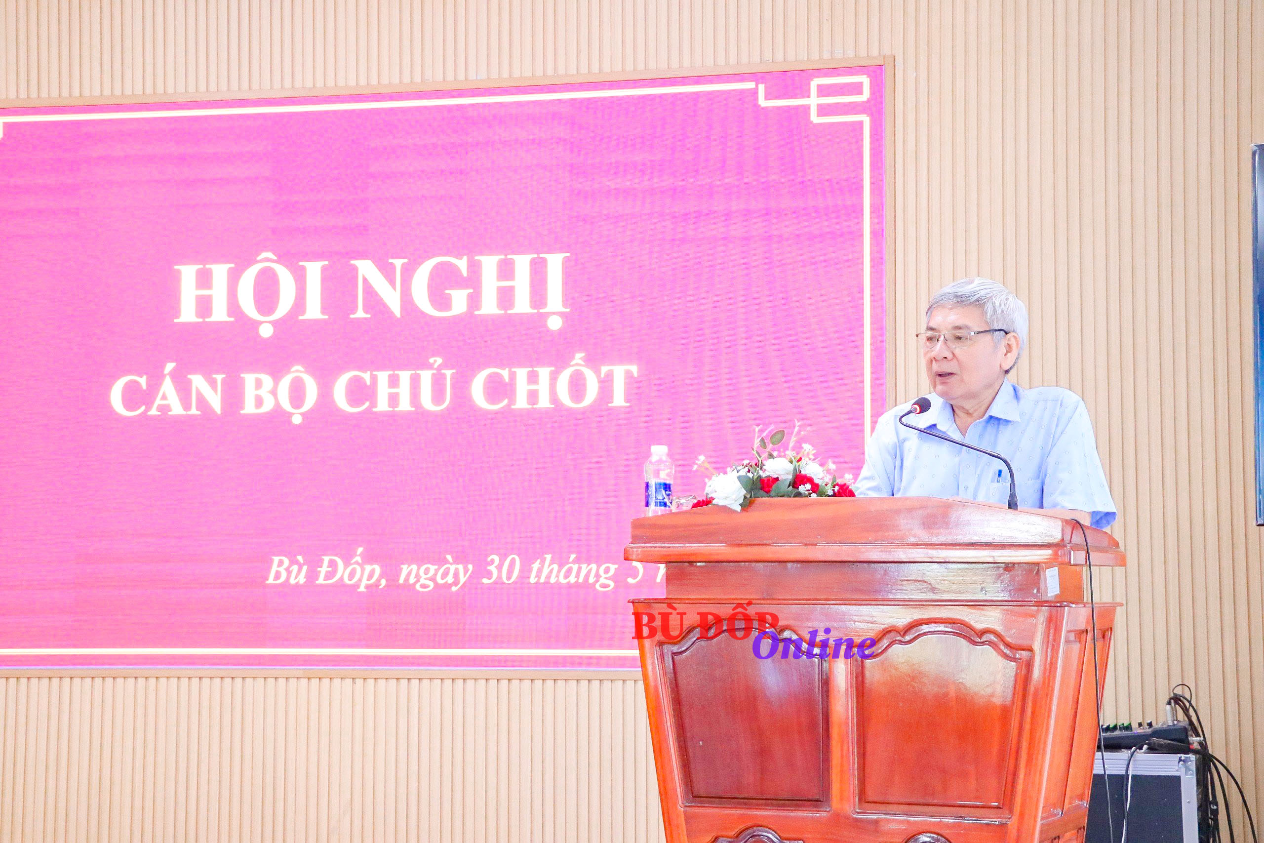 Sáng ngày 30/5 huyện ủy Bù Đốp tổ chức Hội nghị cán bộ chủ chốt về công tác quy hoạch cán bộ nhiệm kỳ 2020 - 2025, 2021 - 2026 và nhiệm kỳ 2025 – 2030, 2026-2031. Dự hội nghị có các đồng chí trong Thường trực Huyện uỷ, UVBTV, UVBCH, Trưởng các cơ quan, ban, ngành huyện và Lãnh đạo Đảng uỷ, UBND các xã, thị trấn.