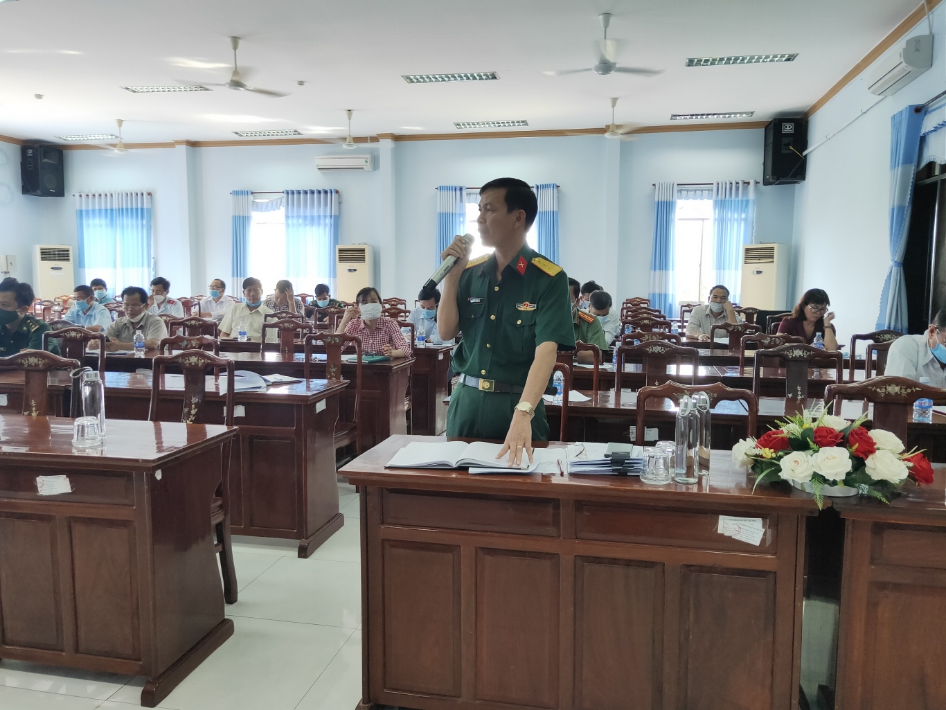 Đồng chí Chỉ huy trưởng Ban Chỉ huy Quân sự huyện phát biểu tại Hội nghị