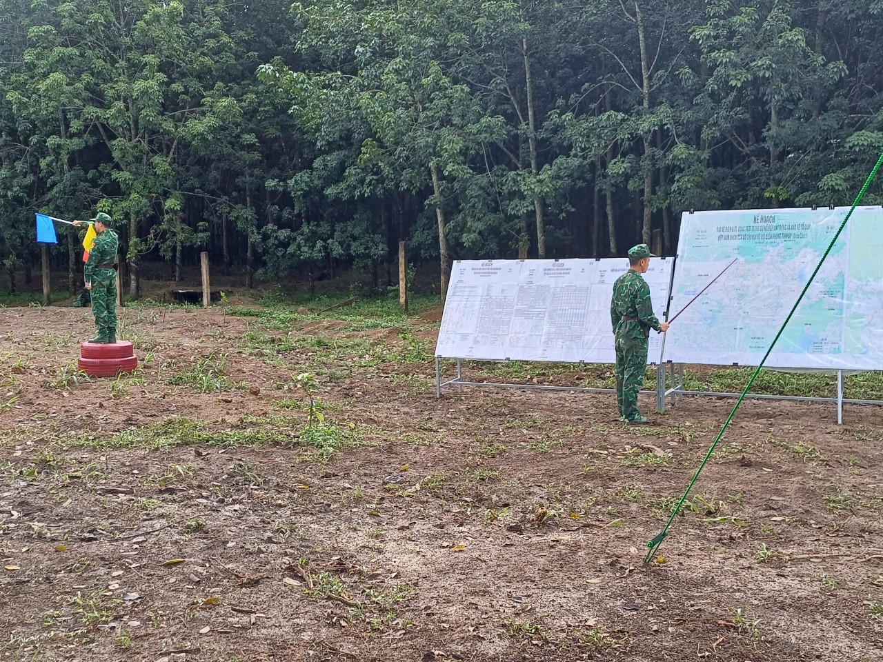 (Cán bộ chỉ huy, chiến sỹ Đồn Biên phòng CKHD tập luyện, diễn tập)