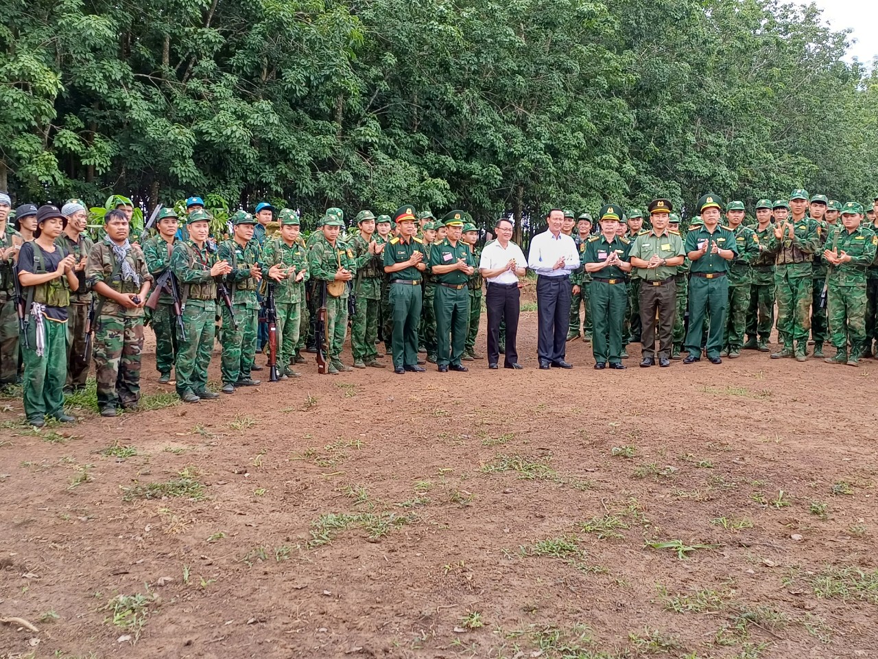 Tham gia buổi kiểm tra công tác huấn luyện tại Đồn Biên phòng cửa khẩu Hoàng Diệu có đồng chí Dương Thanh Huân-TUV, Bí thư Huyện ủy, đồng chí Lê Quang Oanh-Chủ tịch UBND huyện Bù Đốp.