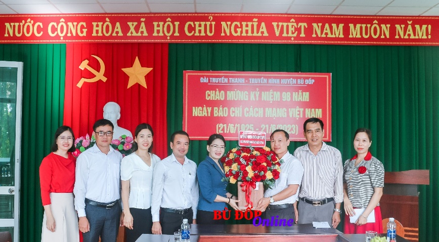 Sáng ngày 21/6/2023, Đoàn công tác của Huyện uỷ- HĐND-UBND- UBMTTQVN huyện Bù Đốp do Phó bí thư Thường trực Huyện uỷ Nguyễn Thị Hoài Thanh làm trưởng đoàn đã đến thăm và chúc mừng tập thể Đài TT-TH huyện nhân dịp kỷ niệm 98 năm ngày Báo chí Cách mạng Việt Nam 21/6/1925-21/6/2023. Cùng dự có Phó chủ tịch UBND huyện Nguyễn Minh Phong; Phó Trưởng ban Tuyên giáo Hồ Bá Toàn và đại diện lãnh đạo Văn phòng huyện uỷ, HĐND- UBND huyện.