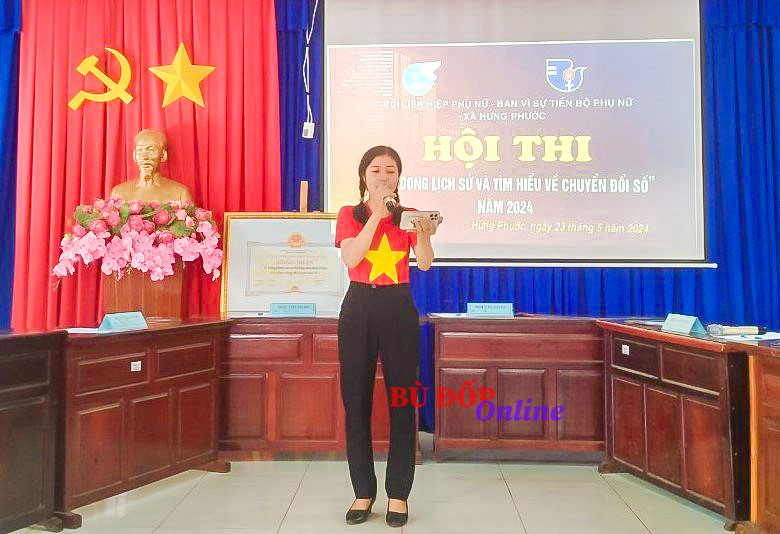 Nhằm tăng cường truyên truyền về Đề án 06, hướng đến xây dựng Chính phủ số đến sâu rộng HVPN xã và Thiết thực thi đua lập thành tích chào mừng các ngày lễ lớn của đất nước, kỷ niệm 70 năm chiến thắng Điện Biên Phủ (07/5/1954 – 07/5/2024), 134 năm ngày sinh Chủ tịch Hồ Chí Minh (19/5/1890 – 19/5/2024) và tạo sân chơi lành mạnh cho CB, HVPN trên địa bàn xã. Sáng ngày 22 tháng 5 năm 2024, Hội LHPN xã Hưng Phước phối hợp Ban vì sự tiến bộ Phụ nữ tổ chức Hội thi theo dòng lịch sử và tìm hiểu chuyển đổi số.