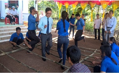 | Đoàn viên thanh niên trong Ấp múa sạp chào mừng ngày hội. |