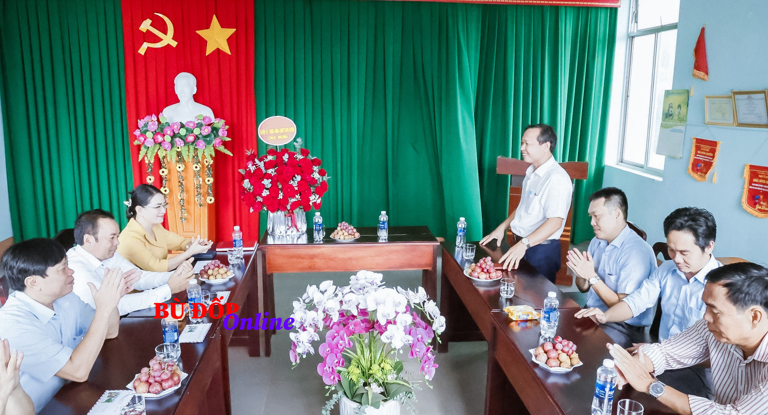 Sáng ngày 20/6, Nhân dịp kỷ niệm 99 năm ngày Báo chí cách Mạng Việt Nam (21/6/1925-21/6/2024), Đoàn lãnh đạo Huyện ủy, HĐND, UBND, UBMTTQ Việt Nam huyện Bù Đốp do đồng chí Phó bí thư Thường trực Huyện ủy Nguyễn Thị Hoài Thanh làm trưởng đoàn đã đến thăm chúc mừng tập thể cán bộ, viên chức Đài Truyền thanh - Truyền hình huyện. Cùng đi, có Phó chủ tịch UBND huyện Nguyễn Minh Phong; Chủ tịch UBMTTQ Việt Nam huyện Phạm Văn Tình; Phó Ban Tuyên giáo Huyện uỷ Văn Thị Ngọc Điệp và đại diện lãnh đạo Văn Phòng Huyện uỷ, Văn phòng HĐND-UBND huyện.