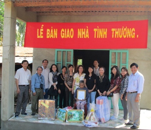 | Ông Đặng Thế Nhàn – PCT.UBND huyện (Bên phải) bàn giao nhà tình thương cho hộ có hoàn cảnh khó khăn xã Hưng Phước |